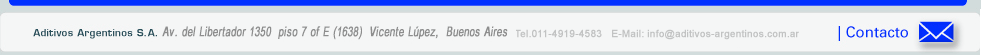 DOMICILIO: Av. del Libertador 1350 piso 7 of E (1638) Vicente López, Buenos Aires. TELÉFONO: 4919-4583 E-mail: info@aditivos-argentinos.com.ar